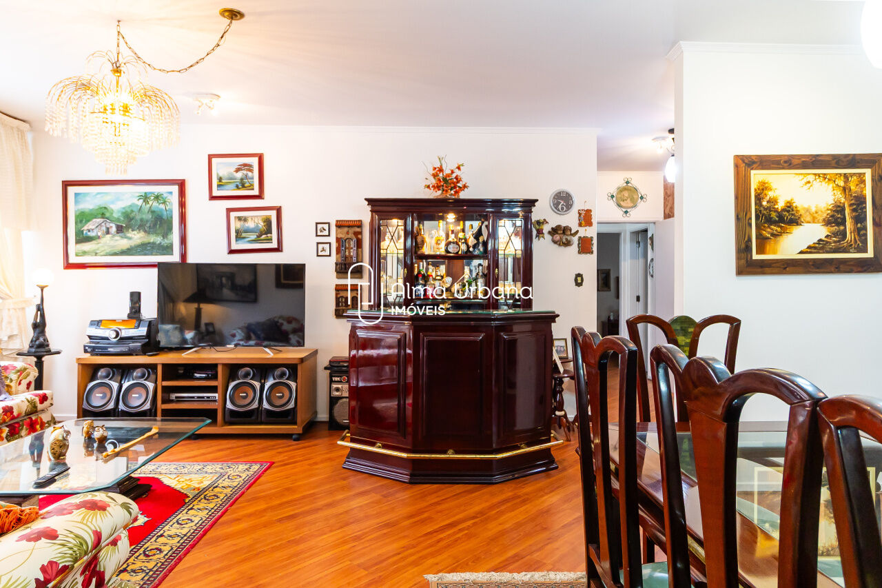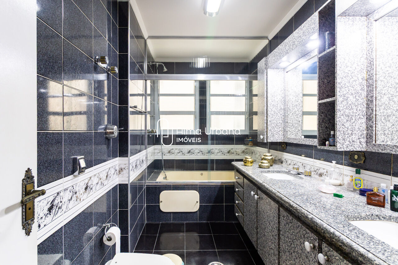 Apartamento com 163 metros, já teve seus armários e as janelas trocados. O apartamento pede modernização, mas possui uma planta flexível, que permite várias configurações.