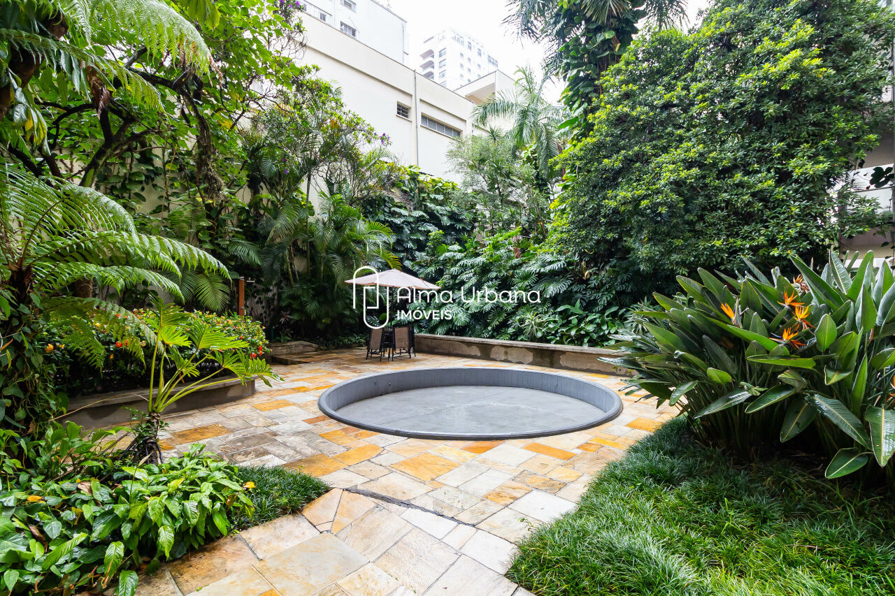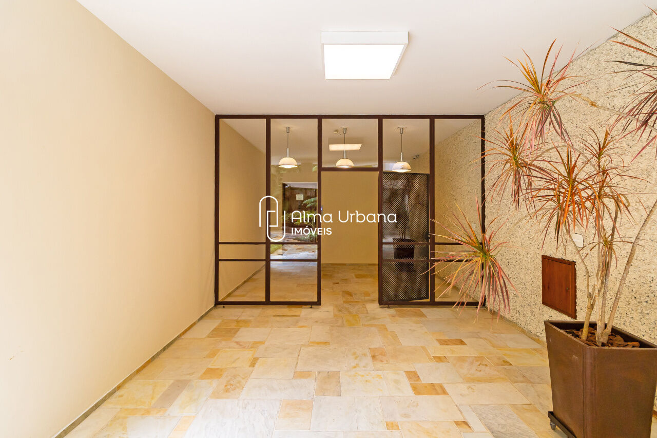 Com seus pilares portentosos da entrada, a fachada de linhas retas e pastilhas rosas, um magnífico jardim que acompanha toda a extensão do prédio, fazem com que a experiência de morar aqui seja um afago aos sentidos.